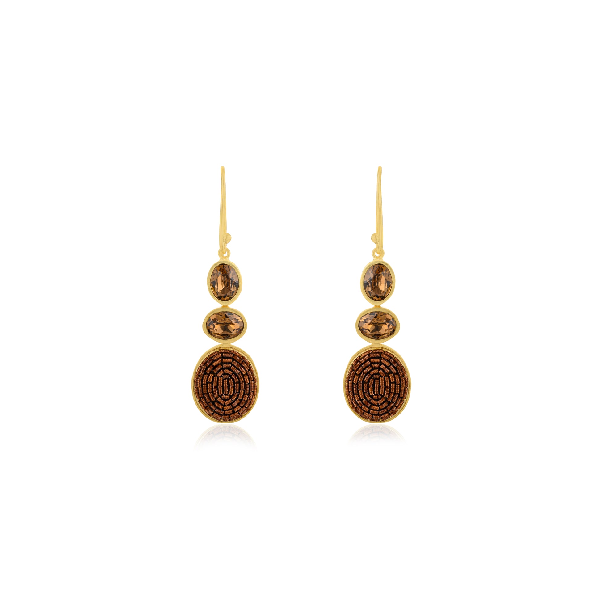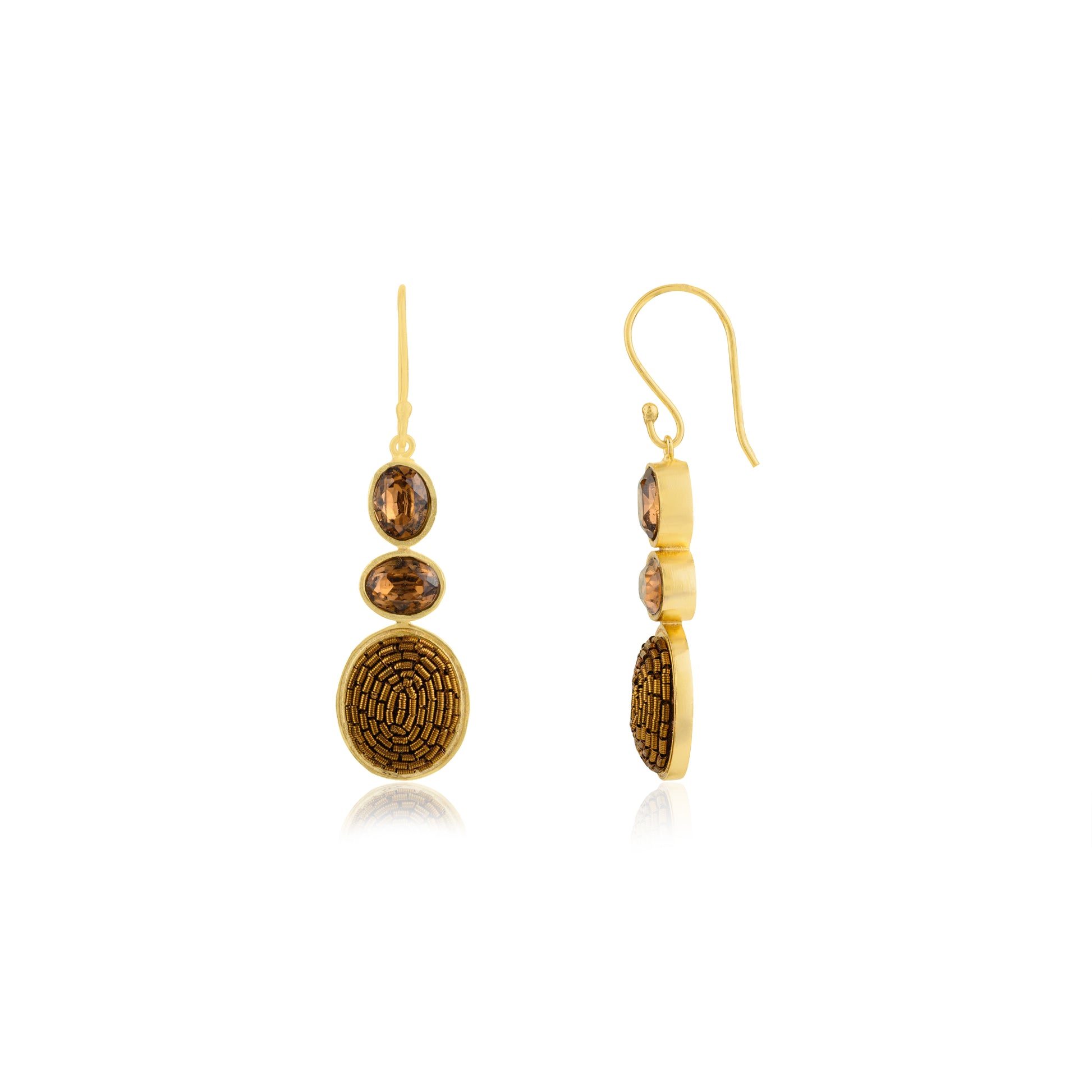 Handcrafted in High-Quality Brass, the Celeste earrings bring a radiant celestial glow to your face and outfit. Designed with our signature embroidery in an oval motif, they combine crystals and embroidery for a truly elevated style. Perfect conversation starters, Celeste Earrings add a touch of the extraordinary to any look.