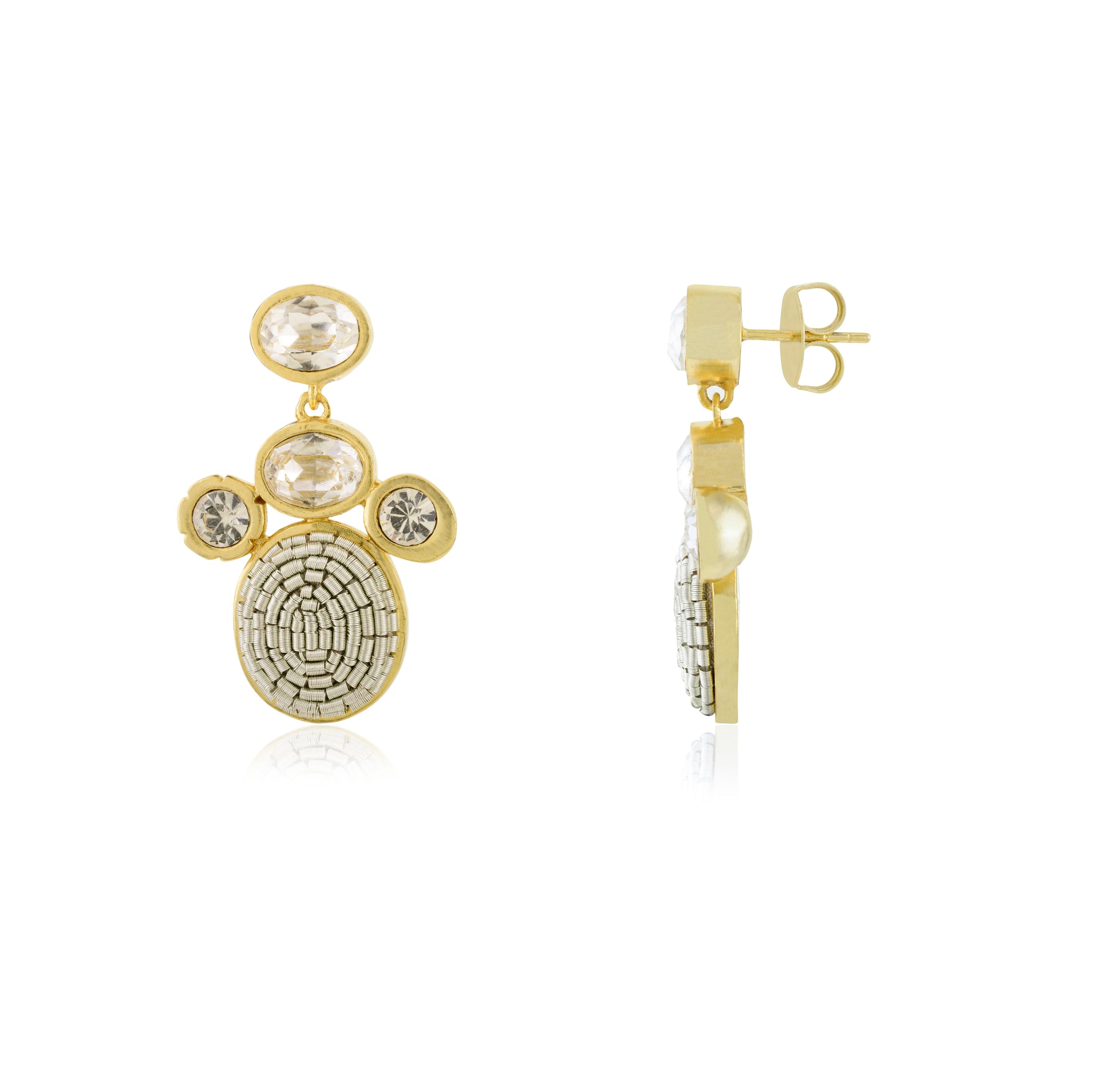 Our Eleanor earrings offer a delightful blend of elegance and charm, merging our distinctive embroidery with dazzling crystals. Their allure lies in their feminine charm, sure to attract the right kind of attention.