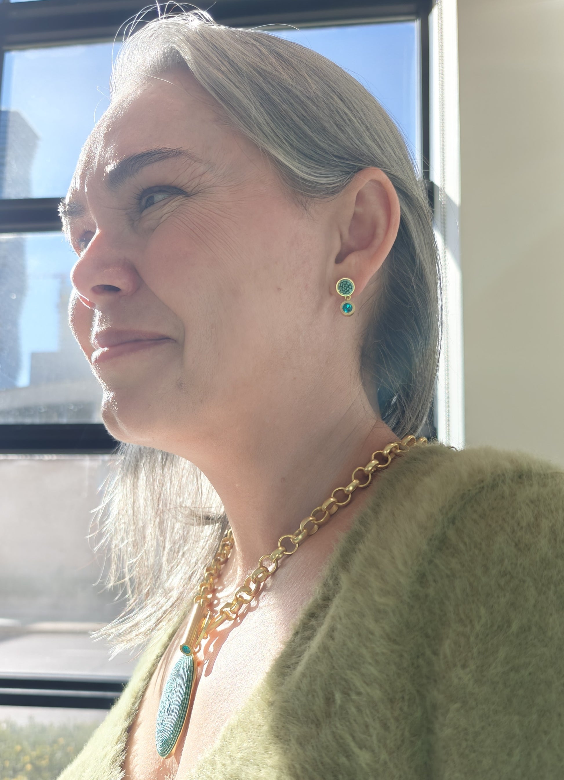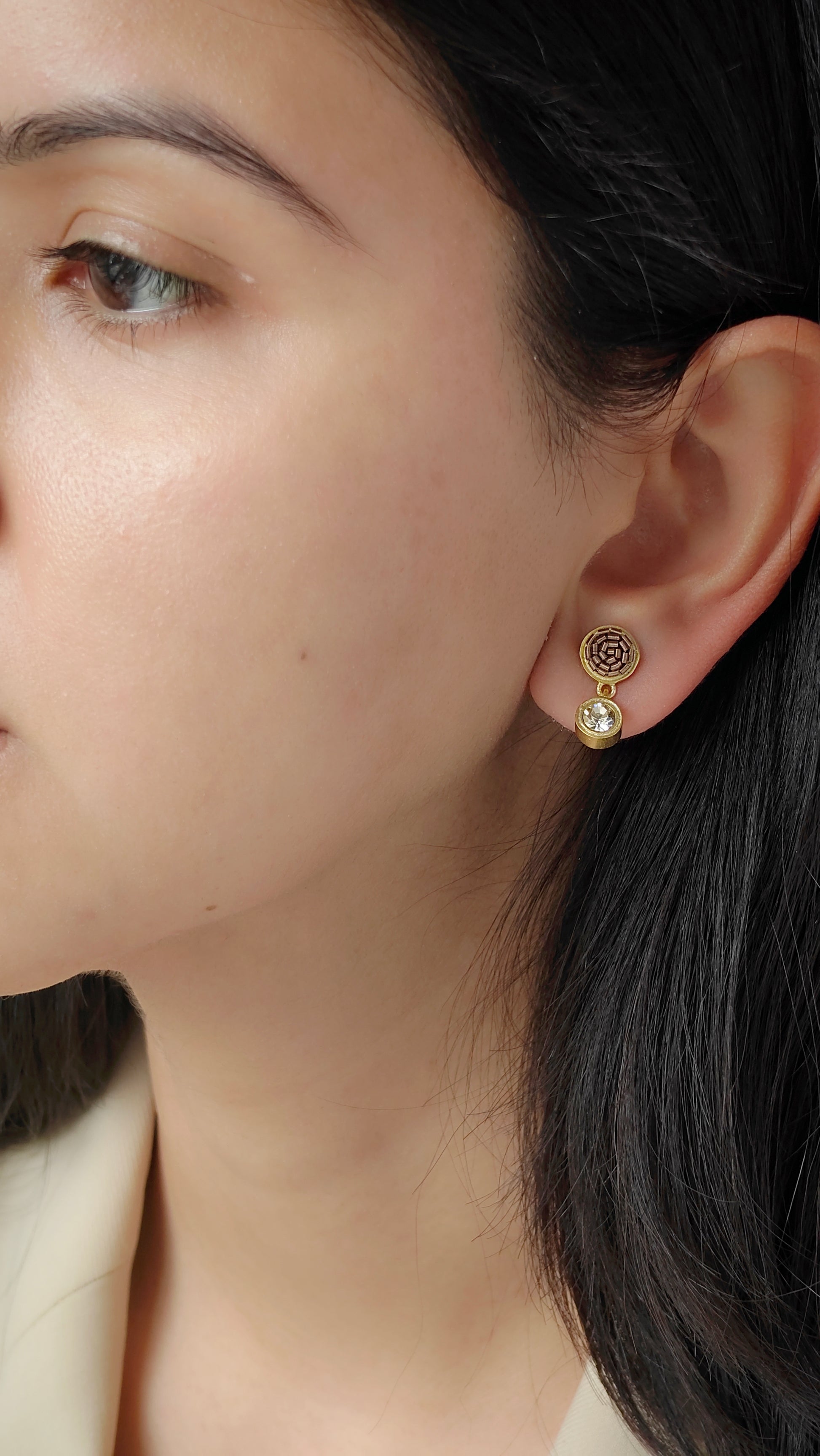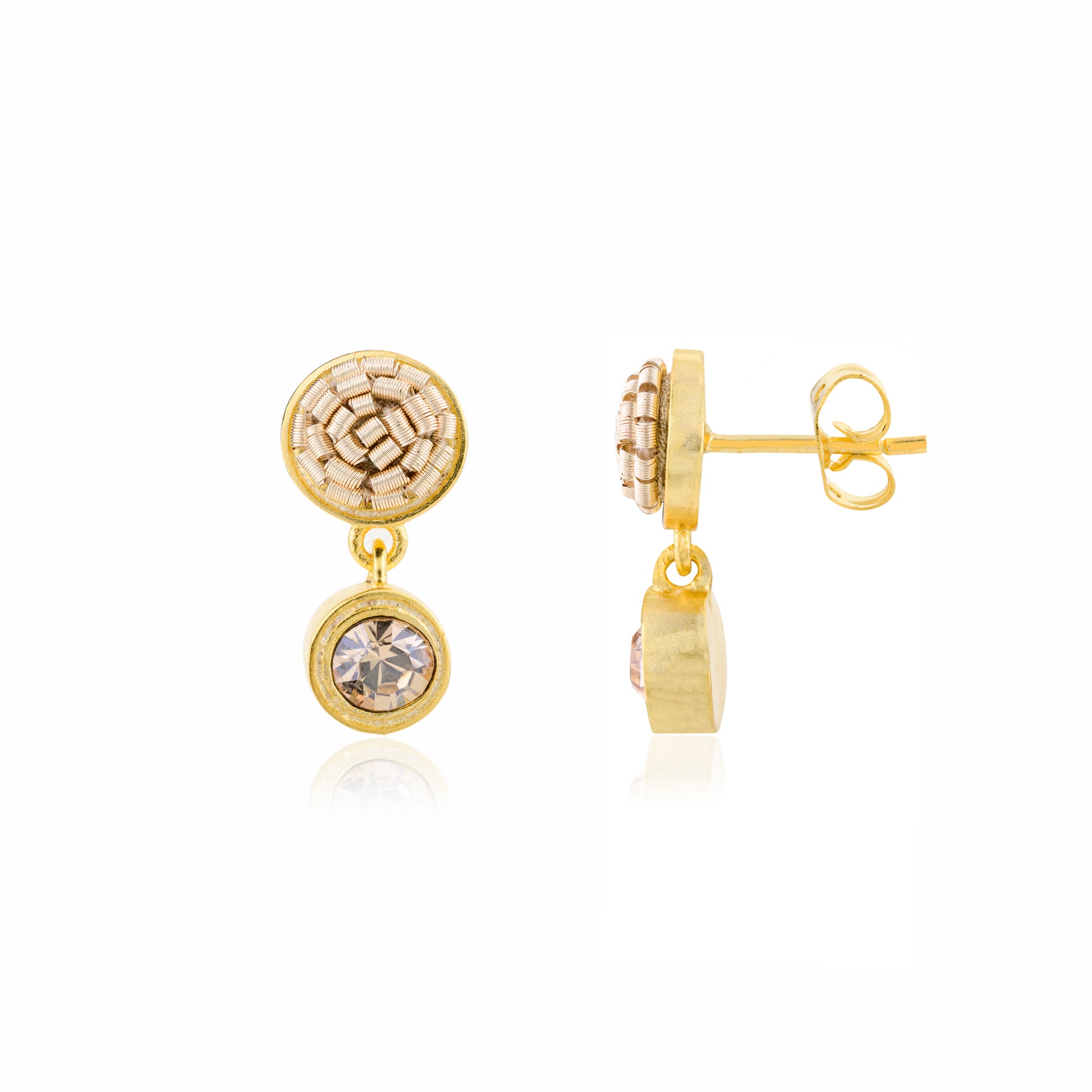 Handcrafted in High Quality Brass with sterling silver posts, introducing Noemi earrings, a true delight for the minimalist at heart. These ultra-lightweight earrings feature our signature delicate embroidery, paired with the sparkle of crystals in an elevated bezel design. Available in a variety of colors with both gold and silver plating options, they offer the perfect understated statement for those who appreciate subtle elegance. Choose your favorite and make a quiet, yet impactful, statement with the Noemi earrings.