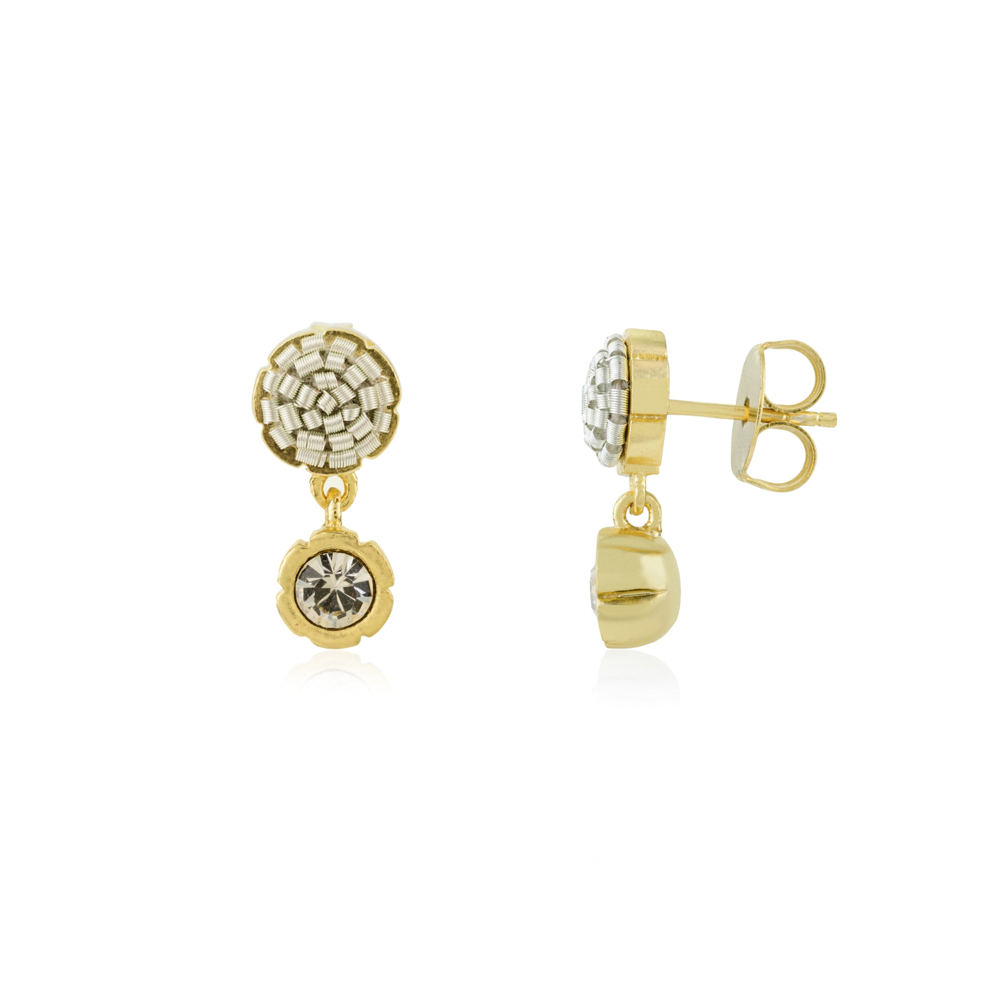 Handcrafted in High Quality Brass with sterling silver posts, introducing Noemi earrings, a true delight for the minimalist at heart. These ultra-lightweight earrings feature our signature delicate embroidery, paired with the sparkle of crystals in an elevated bezel design. Available in a variety of colors with both gold and silver plating options, they offer the perfect understated statement for those who appreciate subtle elegance. Choose your favorite and make a quiet, yet impactful, statement with the Noemi earrings.