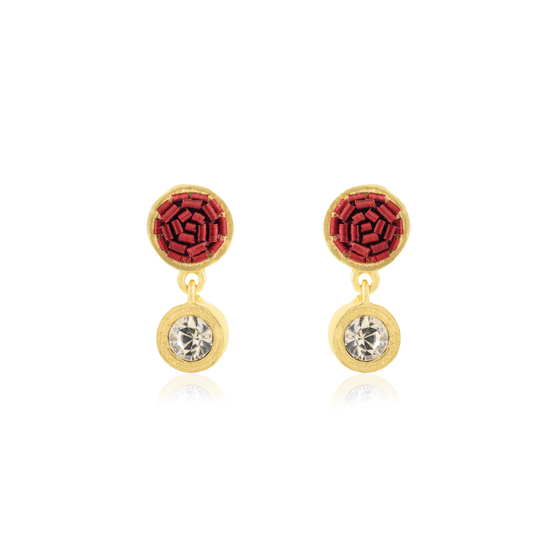 Handcrafted in High Quality Brass with sterling silver posts, introducing Noemi earrings, a true delight for the minimalist at heart. These ultra-lightweight earrings feature our signature delicate embroidery, paired with the sparkle of crystals in an elevated bezel design. Available in a variety of colors with both gold and silver plating options, they offer the perfect understated statement for those who appreciate subtle elegance. Choose your favorite and make a quiet, yet impactful, statement with the Noemi earrings.