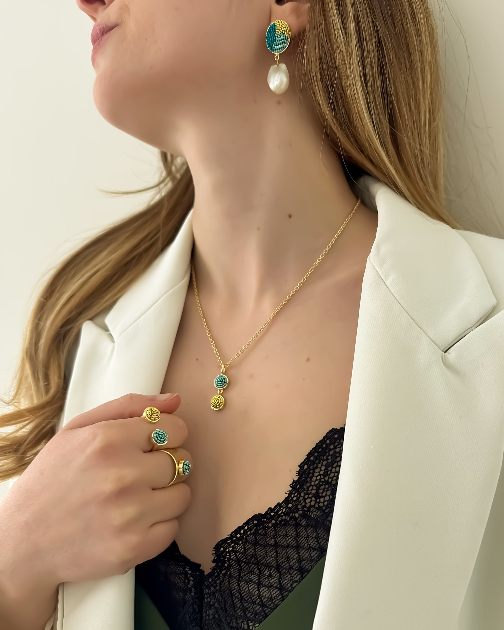 At Akihi, we create and sell handmade textile jewellery that are intricately embroidered and require highly skilled labour to make them. Each piece is unique and reflects the craftsmanship and creativity of our artisans.