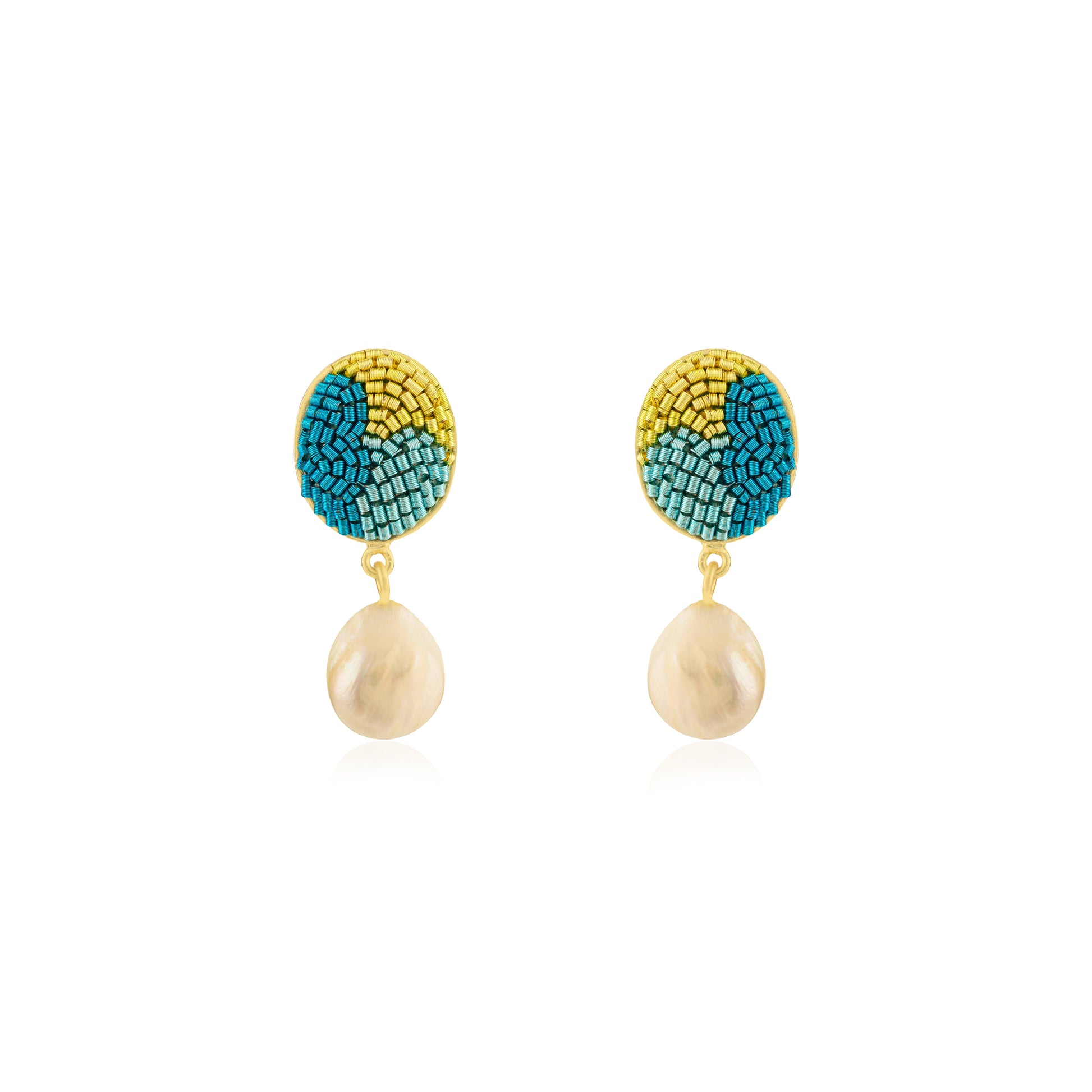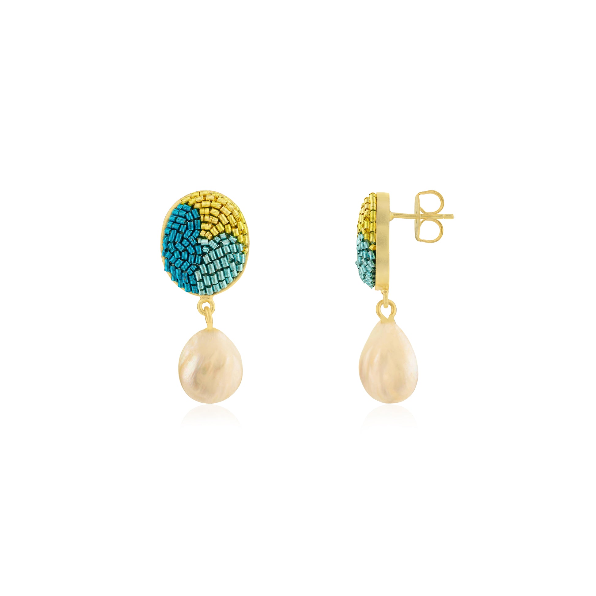 The Reverie earrings showcase the tranquil patterns and harmonious color blends found in nature, which serve as our primary inspiration. Drawing from tropical blues, the hues of pink sunset skies, the darkness of night, and the rich tones of a cappuccino, we have crafted these designs. We've further enhanced their beauty by incorporating the natural luster of baroque pearls, adding an extra layer of depth. They pair beautifully with Reverie Bracelet.