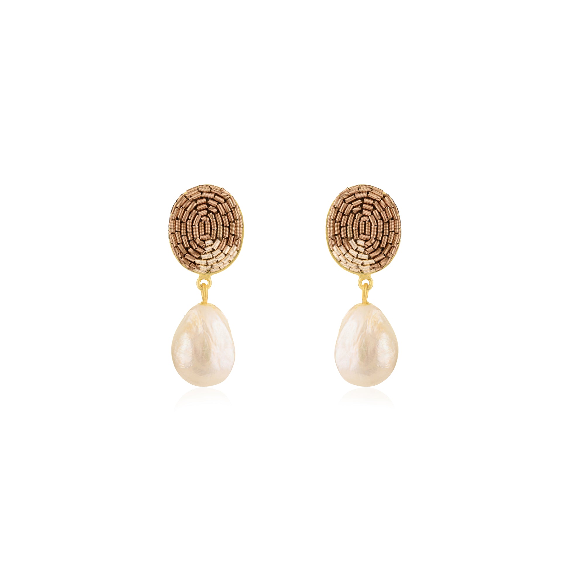 The Reverie earrings showcase the tranquil patterns and harmonious color blends found in nature, which serve as our primary inspiration. Drawing from tropical blues, the hues of pink sunset skies, the darkness of night, and the rich tones of a cappuccino, we have crafted these designs. We've further enhanced their beauty by incorporating the natural luster of baroque pearls, adding an extra layer of depth. They pair beautifully with Reverie Bracelet.