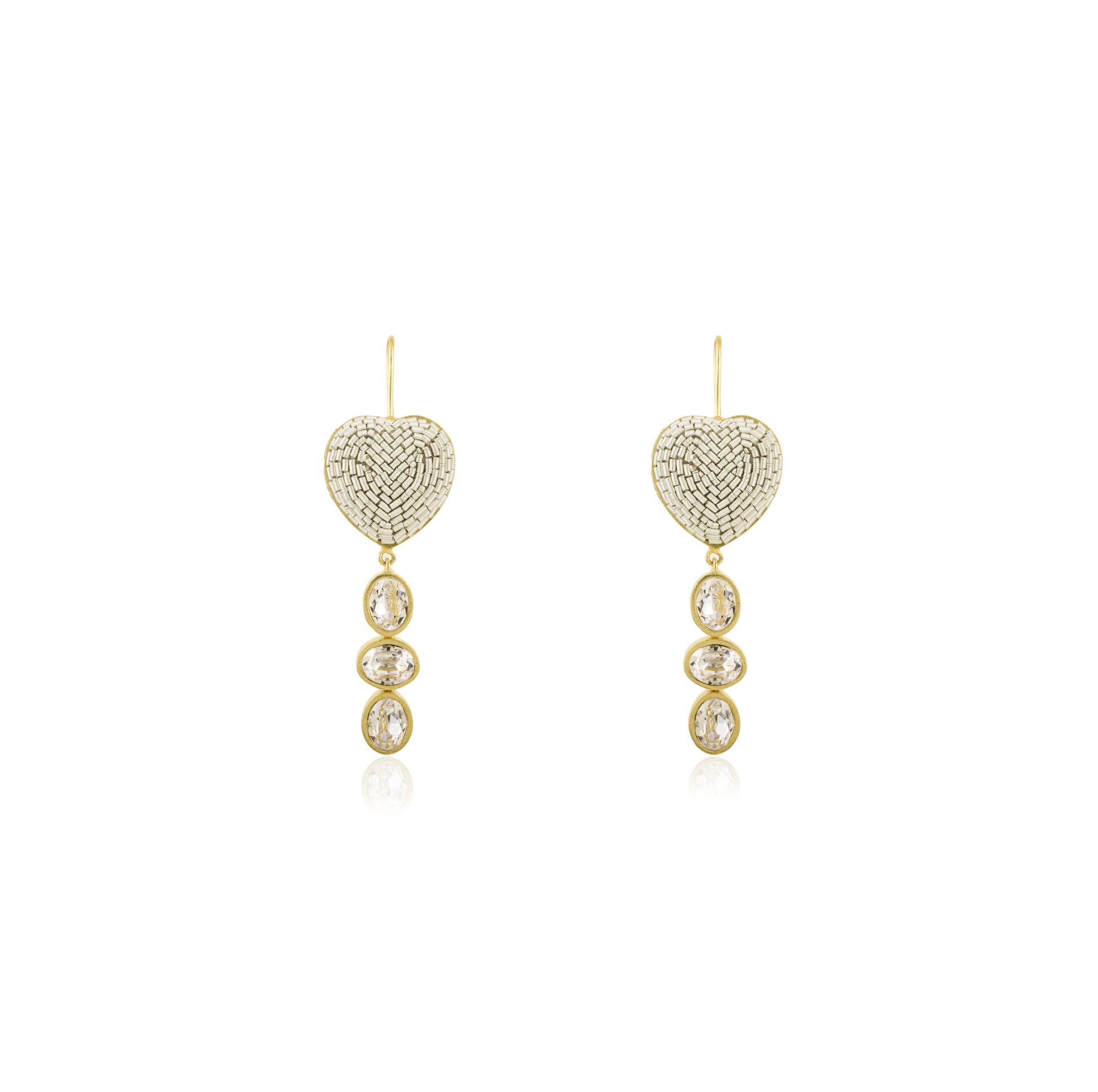 Handcrafted in High-Quality Brass, discover the embodiment of beauty with our Rumi earrings - they're as enchanting as their namesake. The harmony of the shimmering oval crystals and our signature heart motif embroidery create an allure that is hard to resist. These lightweight wire drops are not just an effortless add-on but a charming accessory that brings a tender yet elegant touch to your look. A perfect blend of whimsical sophistication for a statement that speaks volumes.