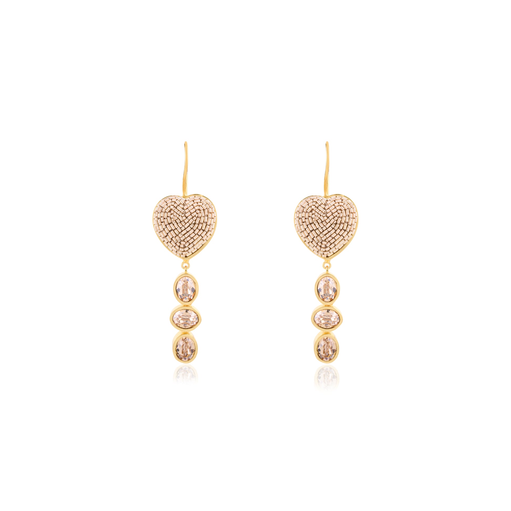 Handcrafted in High-Quality Brass, discover the embodiment of beauty with our Rumi earrings - they're as enchanting as their namesake. The harmony of the shimmering oval crystals and our signature heart motif embroidery create an allure that is hard to resist. These lightweight wire drops are not just an effortless add-on but a charming accessory that brings a tender yet elegant touch to your look. A perfect blend of whimsical sophistication for a statement that speaks volumes.