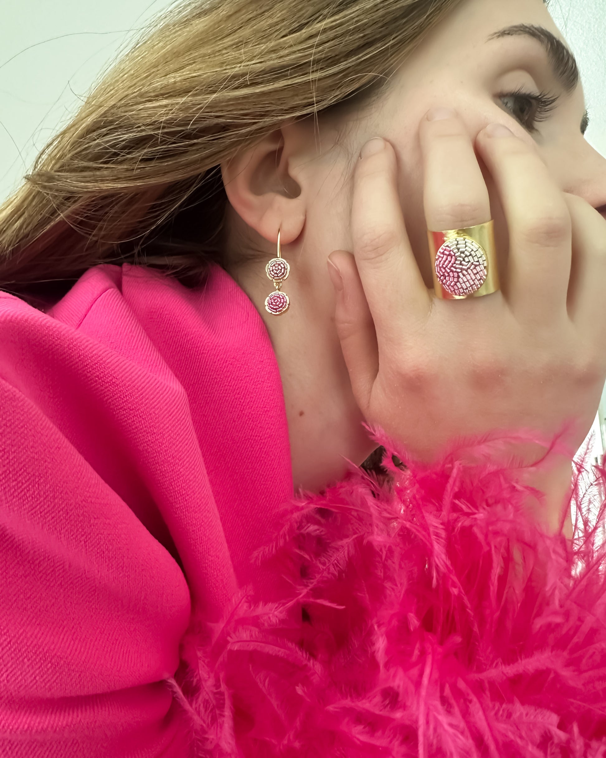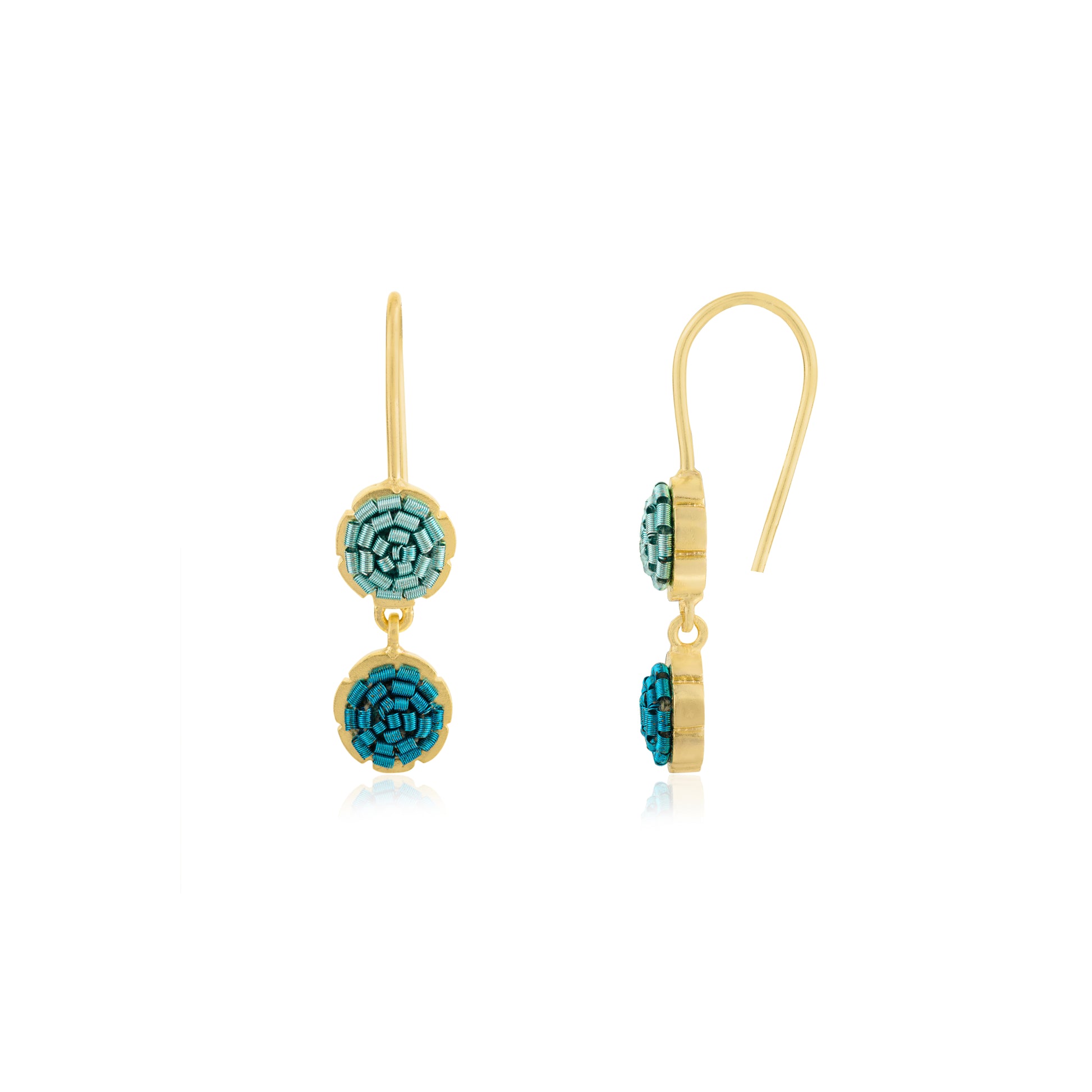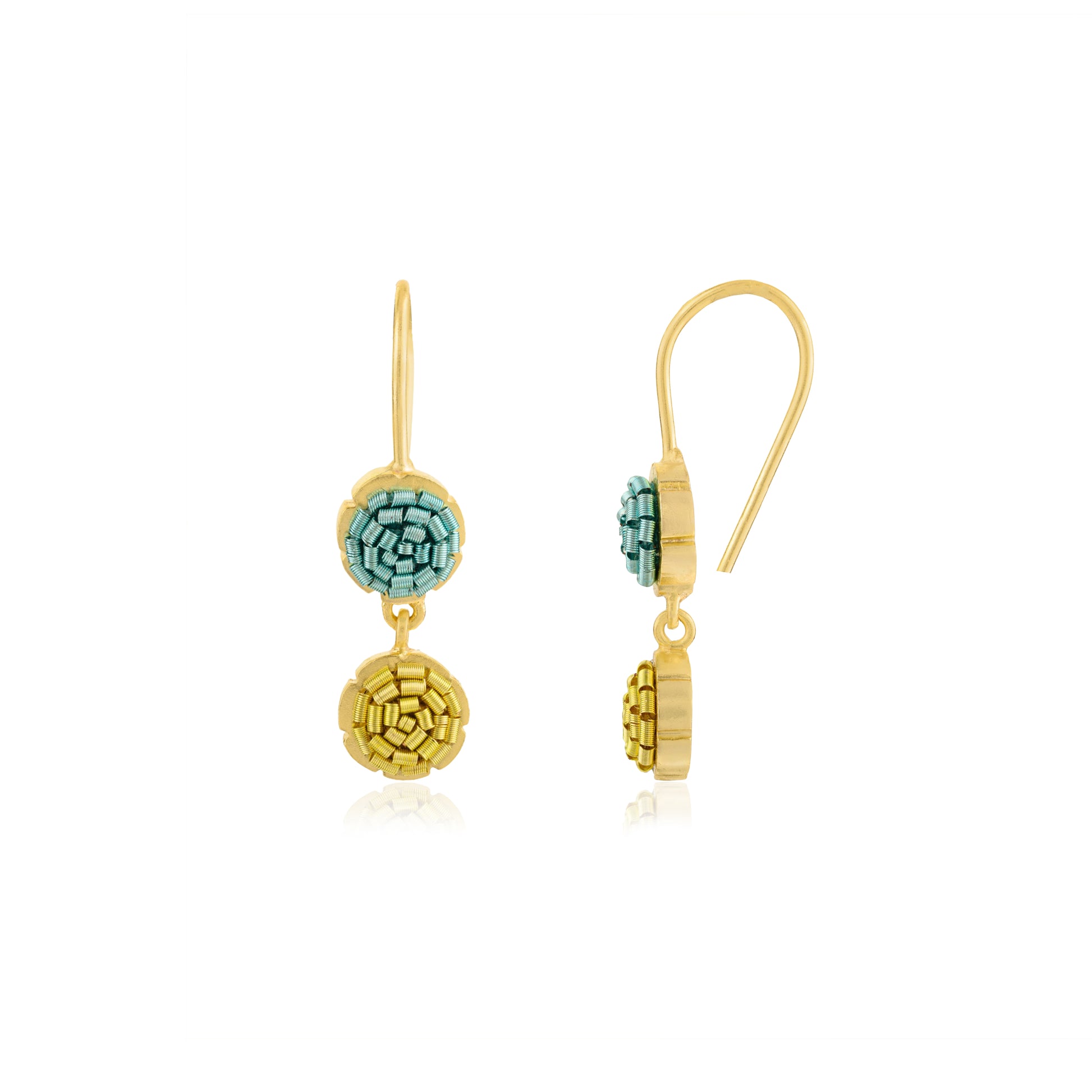 These earrings, aptly named "Flower Dream," showcase our signature flower bezel with vibrant color schemes of our favourite zardozi embroidery. They are delightfully lightweight, making them easy to wear and remove. The carefully chosen colors effortlessly bring joy to any outfit and help you build your jewelry closet that has a capsule vibe.