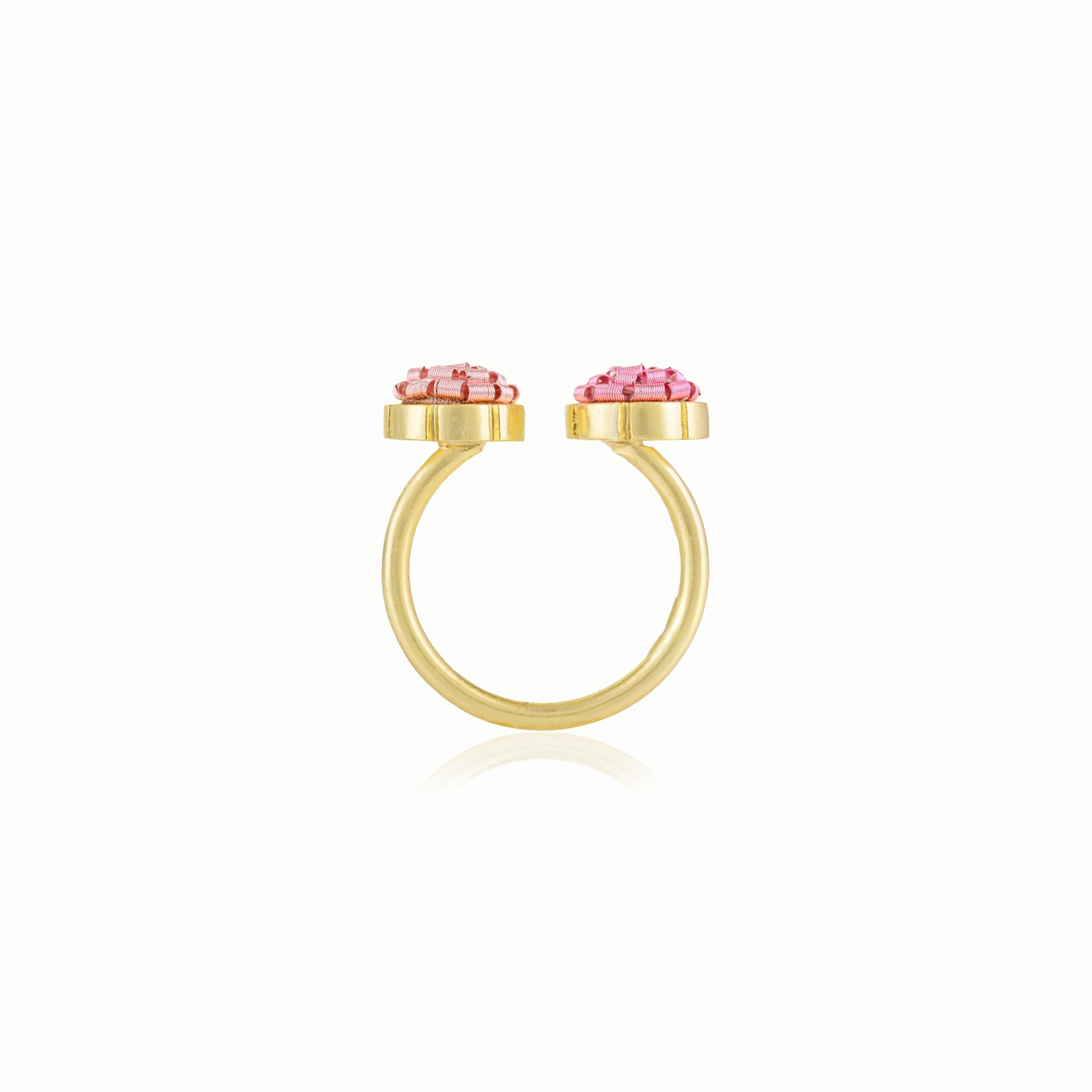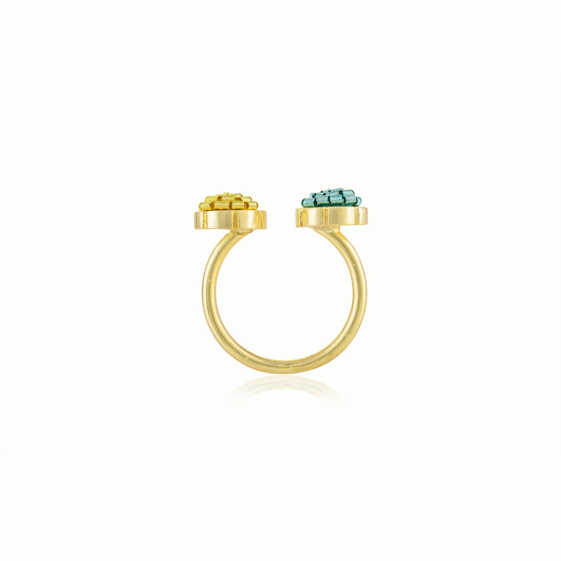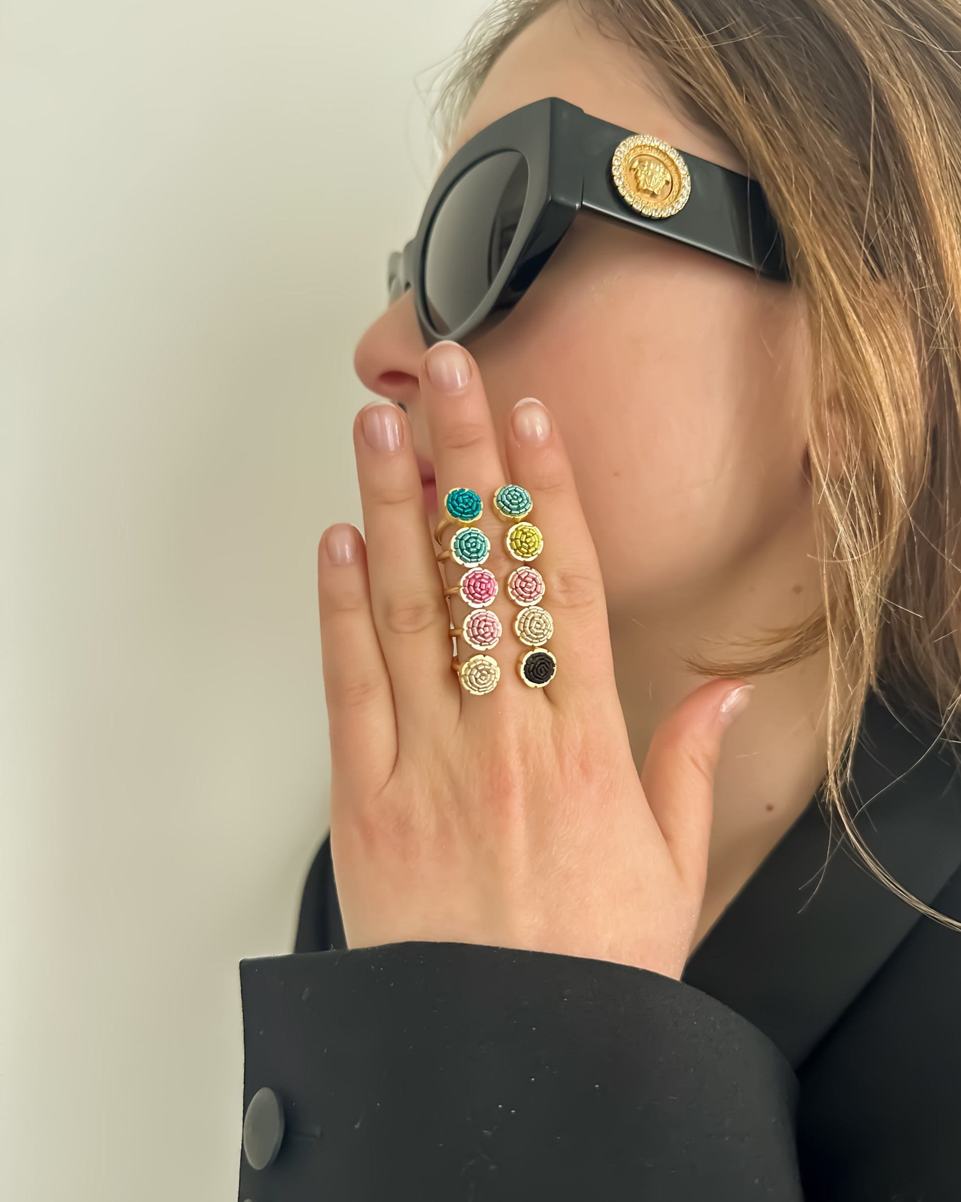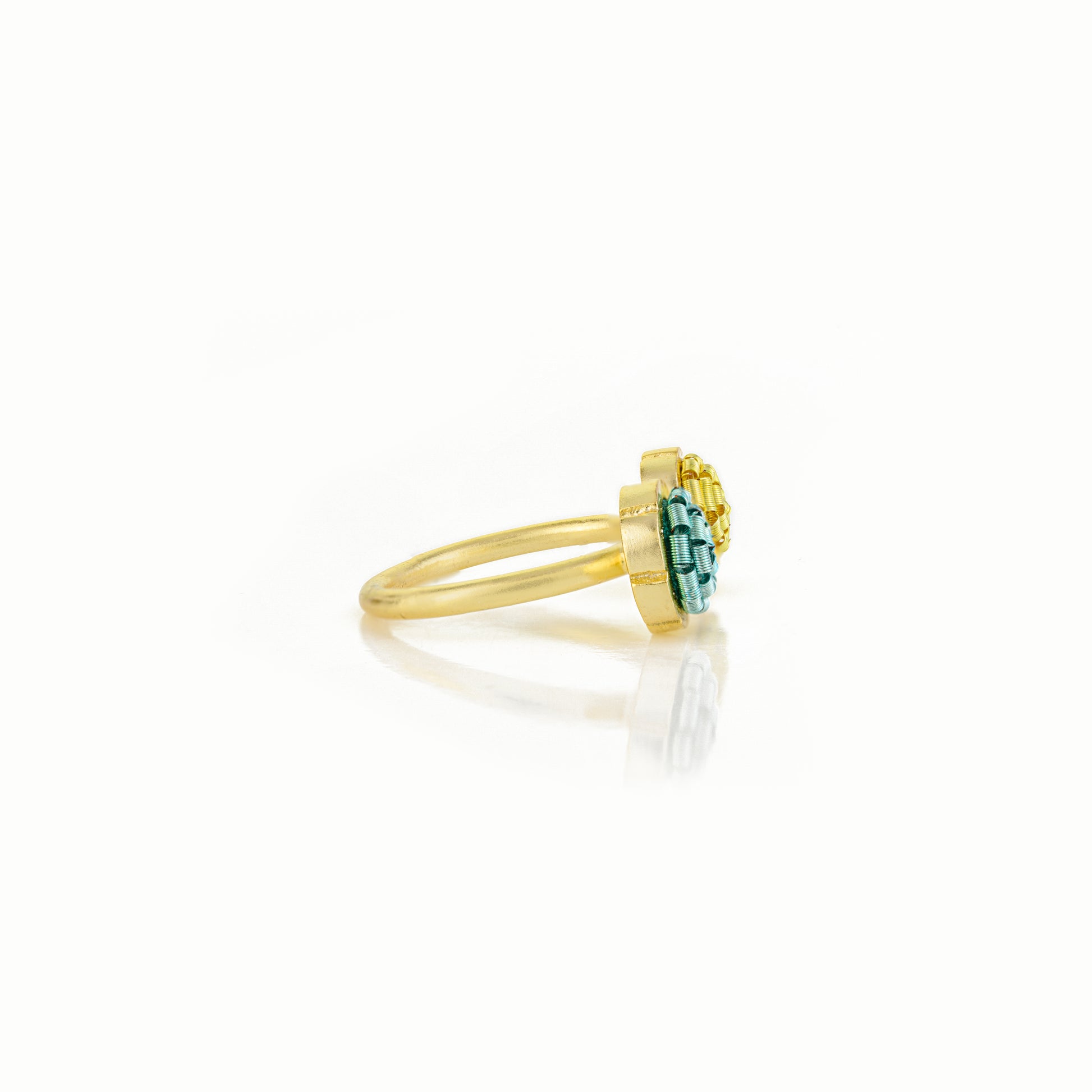 The Flower Dream Ring embodies your affection for vibrant flowers. Featuring our signature flower bezel and the cheerful colors of zardozi embroidery, this adjustable ring effortlessly brings joy to any outfit.