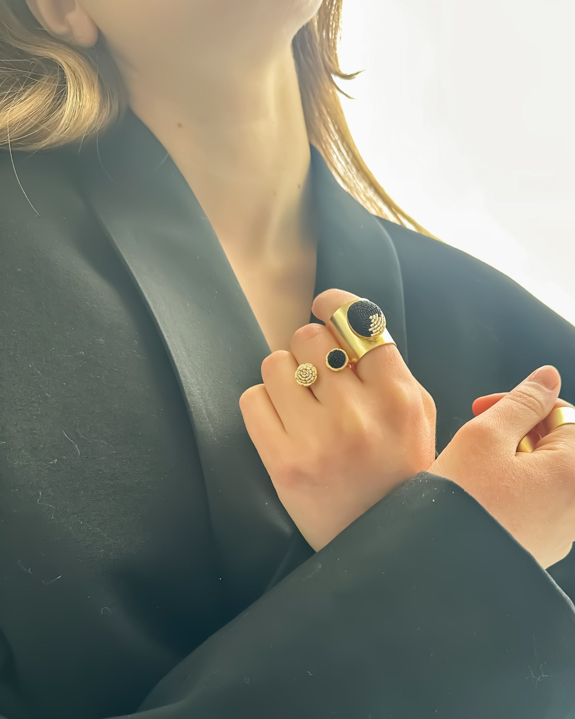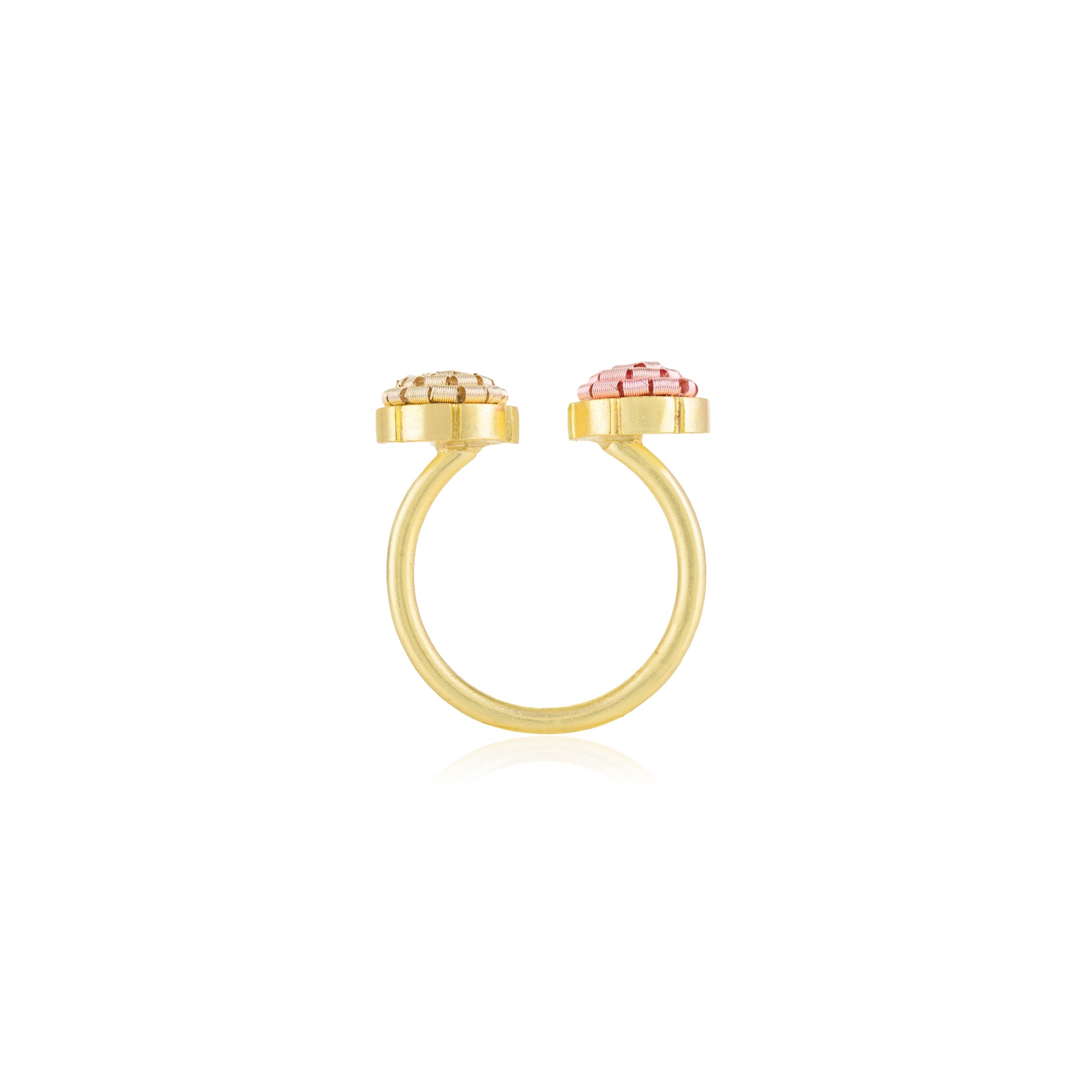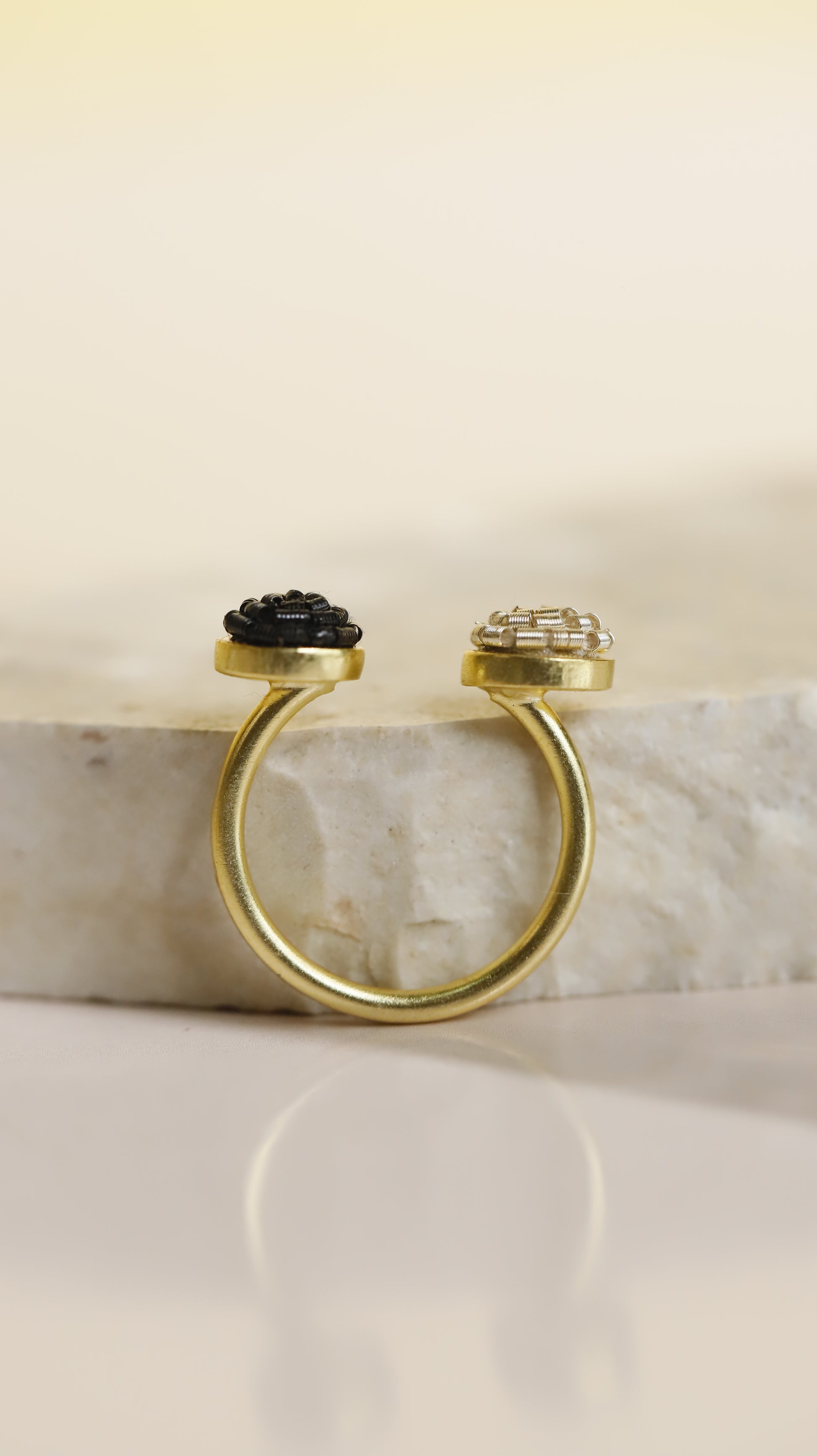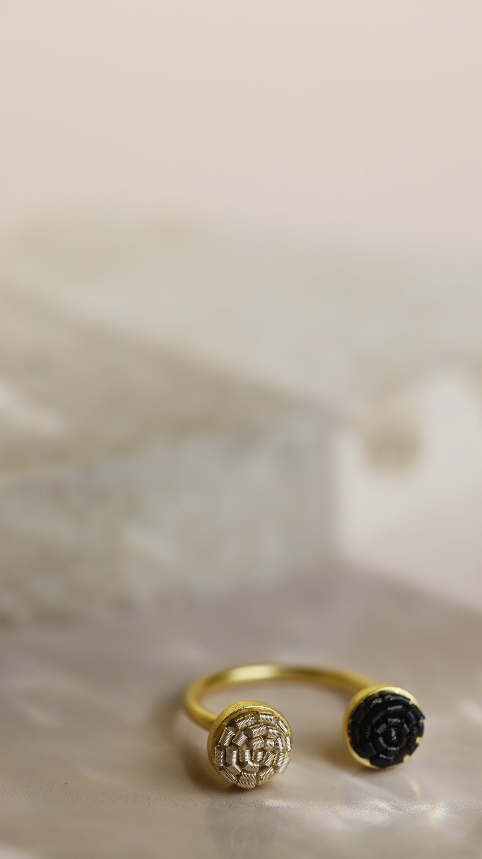 The Flower Dream Ring embodies your affection for vibrant flowers. Featuring our signature flower bezel and the cheerful colors of zardozi embroidery, this adjustable ring effortlessly brings joy to any outfit.